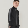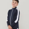 Knitted tracksuit top with contrast colour panels on outer sleeve.